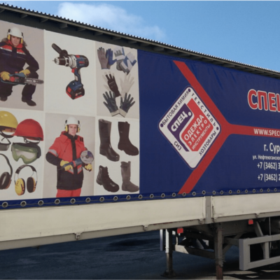 Материал для изготовления – пенофлекс (виниловая ткань), его срок эксплуатации около 5 лет. Рекламное изображение могут также наносить на виниловую сетку, если брандмауэр располагают на той части здания, где есть окна. В этом случае конструкция крепится на некотором расстоянии от стены.