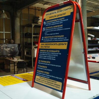 • Небольшой вес и складная конструкция позволяют удобно переносить и хранить штендер в неиспользуемое время