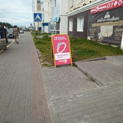 Особенно продуктивен такой вид рекламы, если основная масса людей проходит вне прямой видимости вывески, например, в арке или за углом.